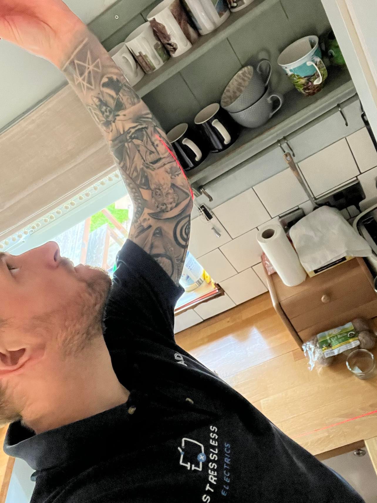Installing some down lights for this kitchen. We lifted the floors above for this one.